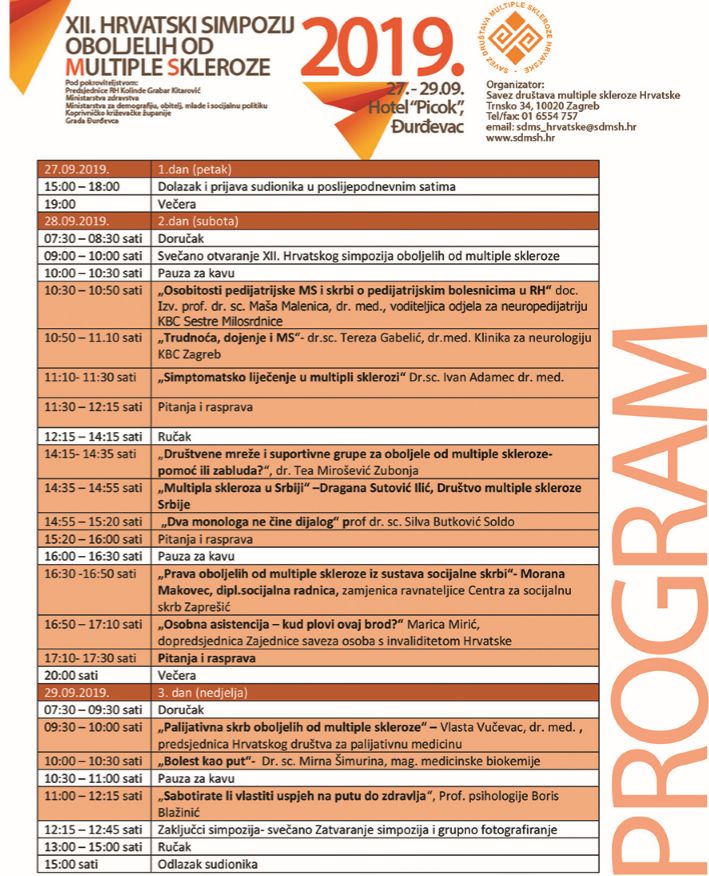 Održano predavanje: BOLEST KAO PUT, dr. sc. Mirna Šimurina, mag. medicinske biokemije, 29.9.2019. 10h, XII. HRVATSKI SIMPOZIJ OBOLJELIH OD MULTIPLE SKLEROZE, Đurđevac
